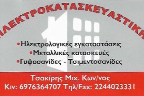 ΗΛΕΚΤΡΟΚΑΤΑΣΚΕΥΑΣΤΙΚΗ - ΤΣΑΚΙΡΗΣ ΚΩΝΣΤΑΝΤΙΝΟΣ